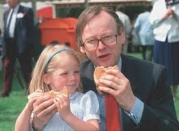 Remember BSE, the 'mad cow disease' whose true impact and extent among humans we still await with some trepidation? The whole scare did enormous political damage to the Major administration in the 1990s, indelibly seared on the public consciousness when the Minister responsible was shown feeding his daugher a burger in an apparent attempt to still public worries about the disease (above). Some of it was self-inflicted via a bizarre and self-defeating 'empty chair' protest at European Union level, but more of the public anger was directed against an official culture that erred on the wrong side of public safety, and leant over towards the farming industry just about as far as it could. Until shoving offal into the food supply turned out to be a really, really bad idea. Former Prime Ministers had to run for cover. The Opposition of the time had a field day.